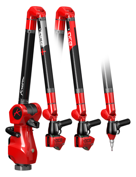 ACE測量臂分為ACE系列和ACE+系列共兩個系列,ACE+測量臂采用最新的編碼器技術(shù),擁有先進的校準(zhǔn)方法,保證其出色性能;ACE系列測量臂和ACE+系列測量臂均可分為6軸測量臂和7軸測量臂兩類,6軸測量臂是高精度點測方案的完美選擇,同等尺寸下6軸測量臂比7軸測量臂更精確;7軸測量臂適合掃描測量方案,與SKYLINE 3D掃描儀直接集成,掃描和點測間輕易轉(zhuǎn)換。