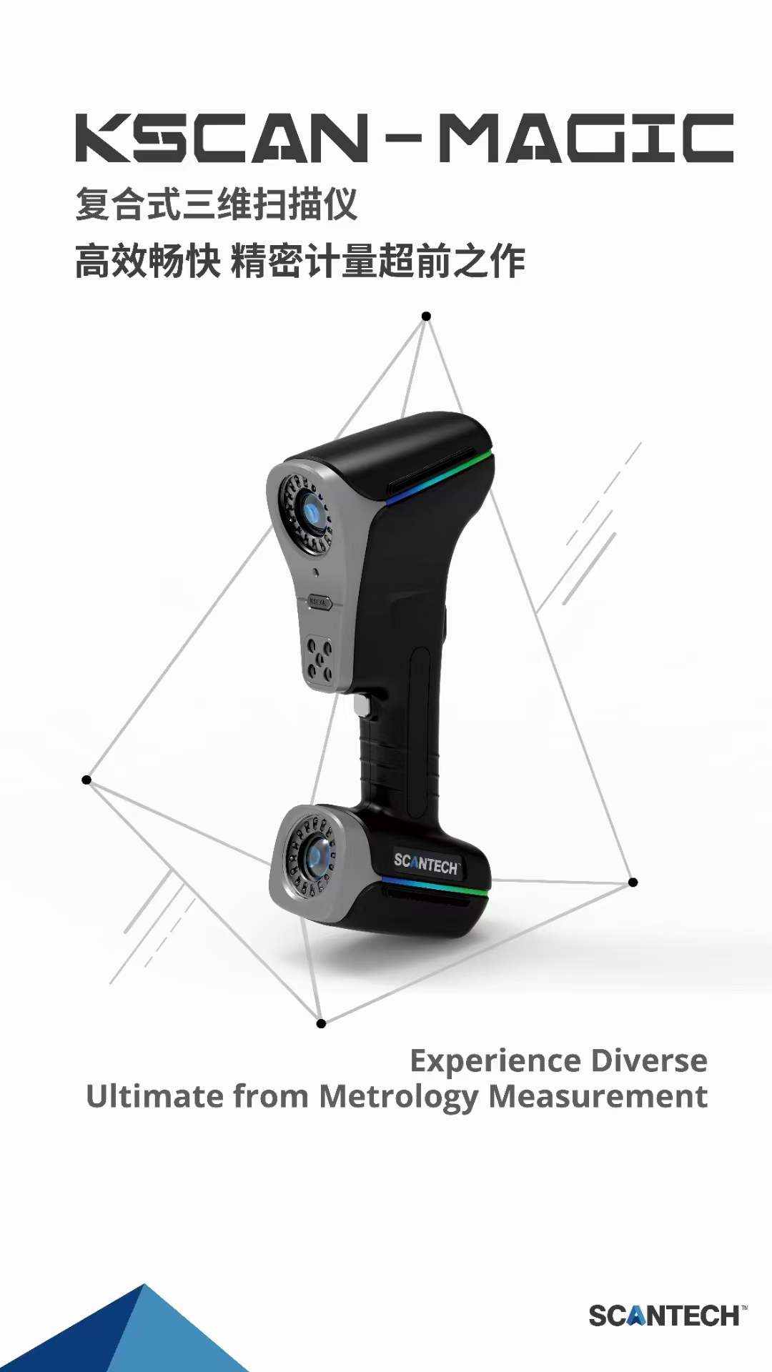 KSCAN-Magic系列是全球首款紅外+藍色激光計量級復(fù)合式三維掃描儀,標(biāo)配五種工作模式:全球首創(chuàng)紅外平行激光大面幅掃描,藍色交叉激光高速掃描,藍色平行激光精細掃描,單束藍色激光深孔掃描,內(nèi)置全局攝影測量系統(tǒng)。