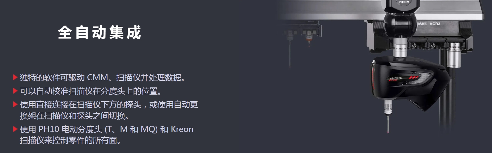 3D掃描儀用于三坐標(biāo) 將您的三坐標(biāo)優(yōu)化為掃描設(shè)備 3D掃描儀是CNC 和 CMM的優(yōu)勢補充,它可滿足生產(chǎn)和投資的回報要求,同時贏得檢測時間。 Kreon 3D掃描儀可最大程度發(fā)揮CNC 和CMM機器的潛力。